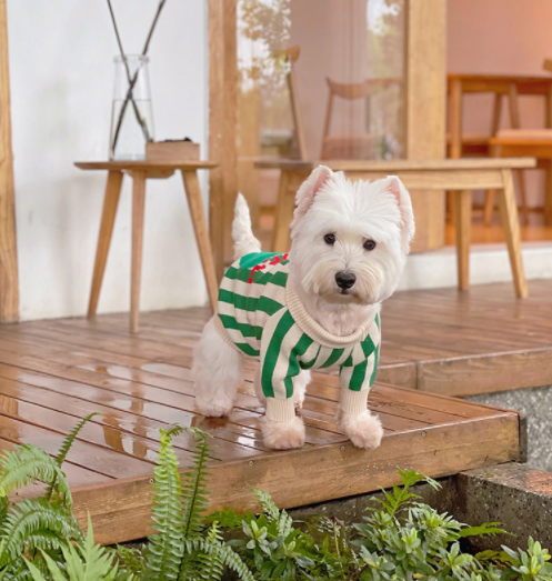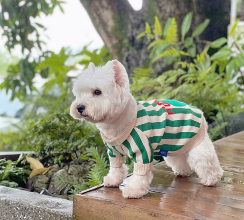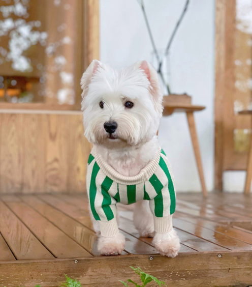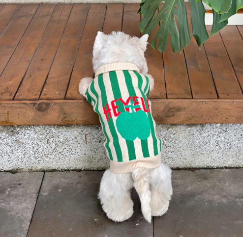 멍신사 그린 애플 스트라이프 니트 스웨터