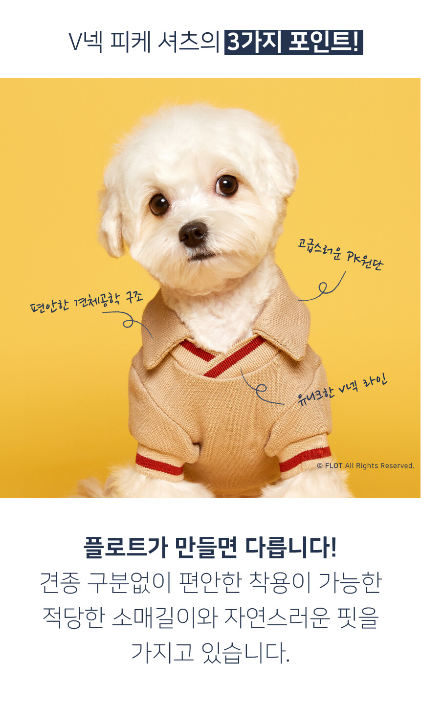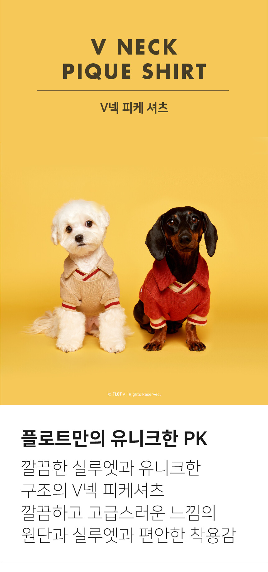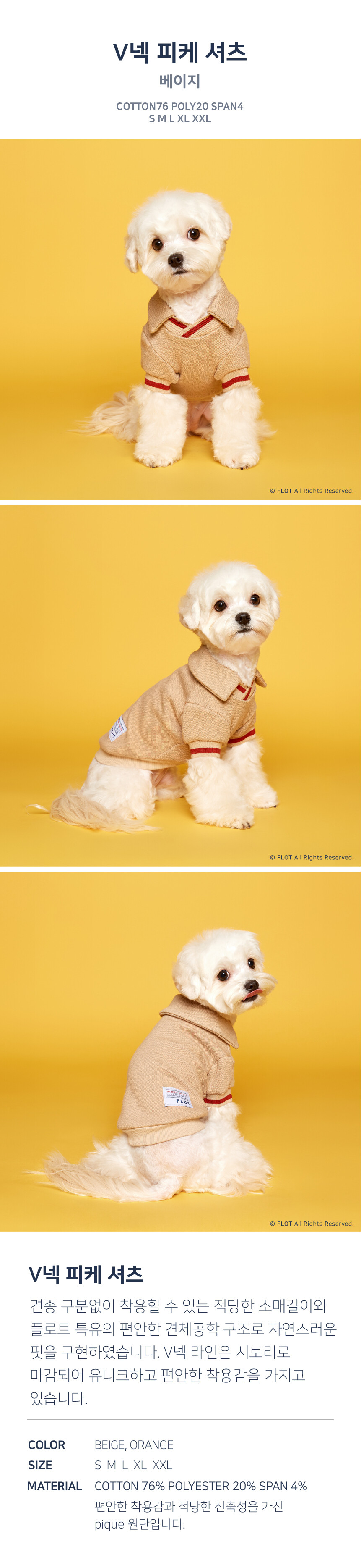 플로트 V넥 피케셔츠 강아지옷 베이지