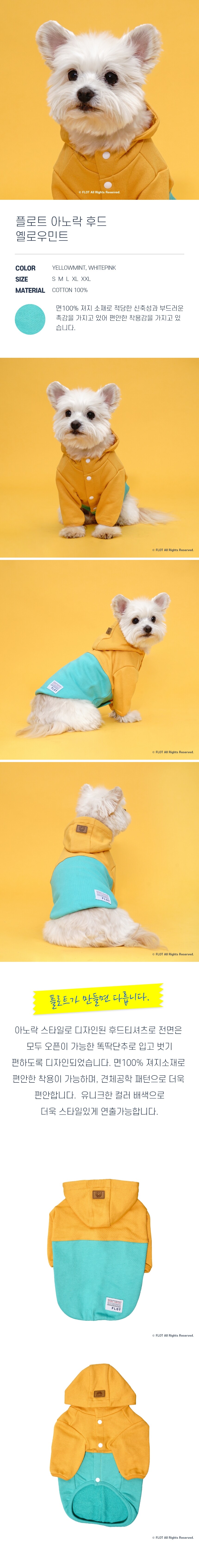 플로트 아노락후드 강아지옷 옐로우민트