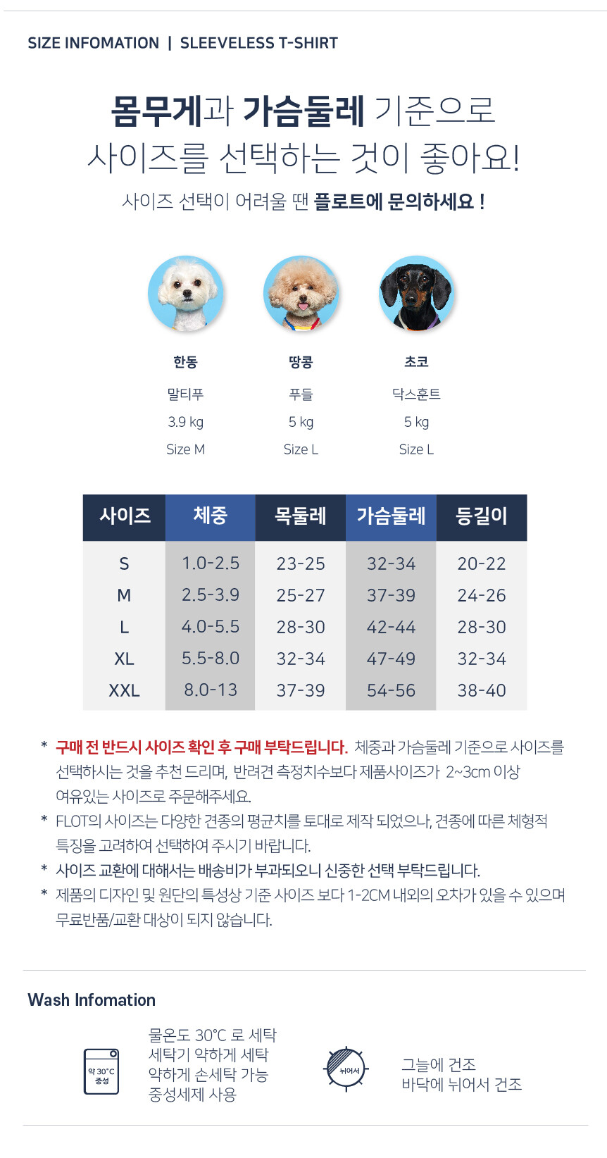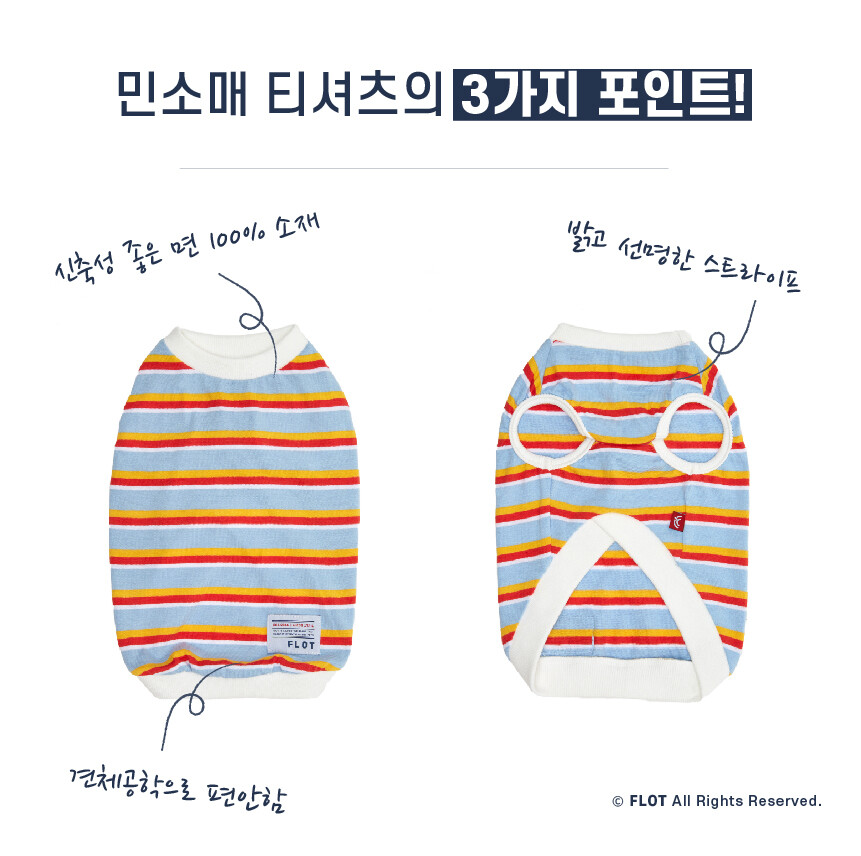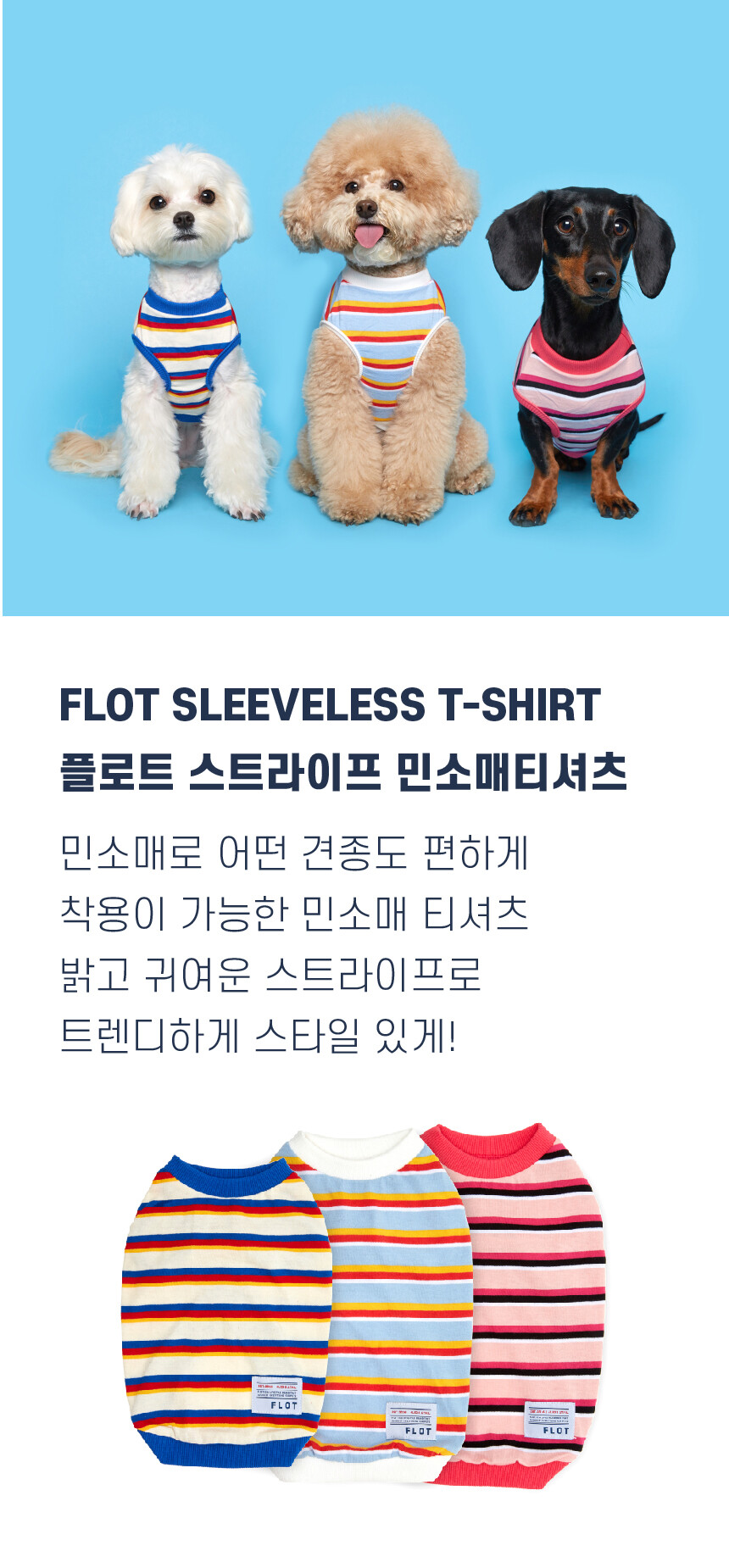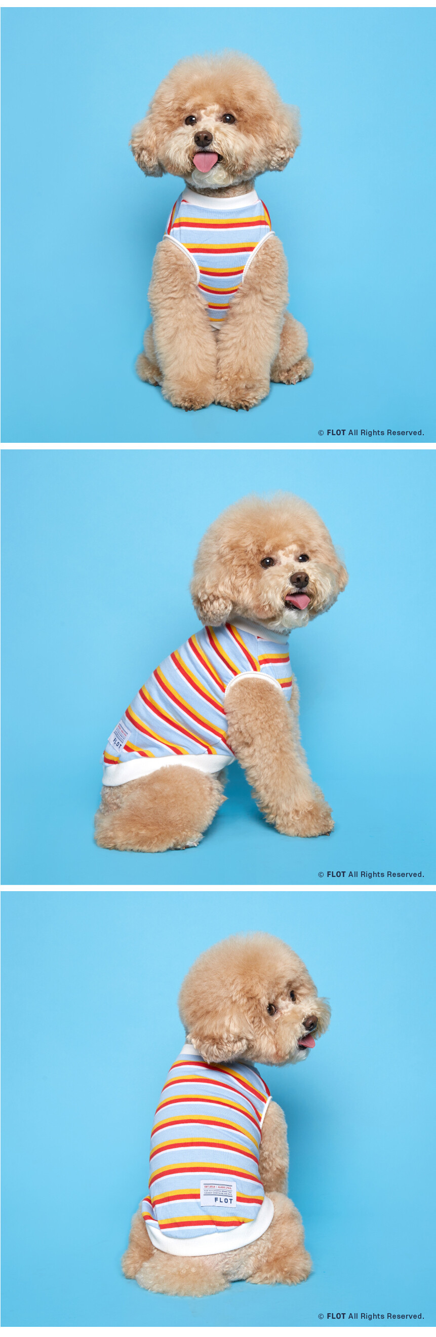 플로트 스트라이프 민소매티셔츠 강아지옷 스카이