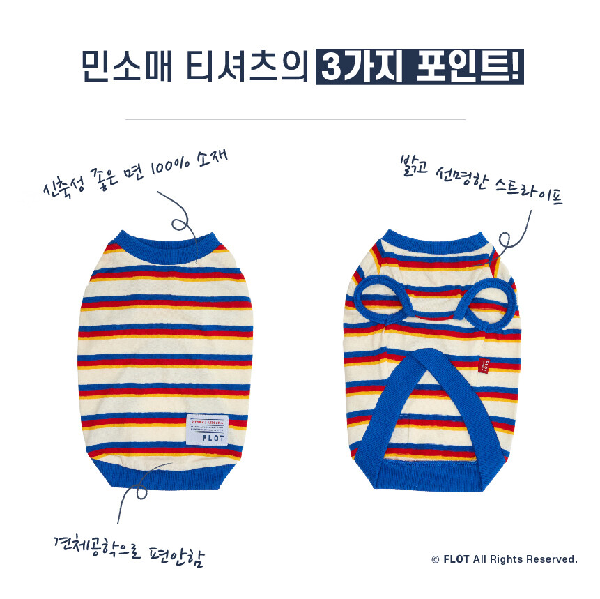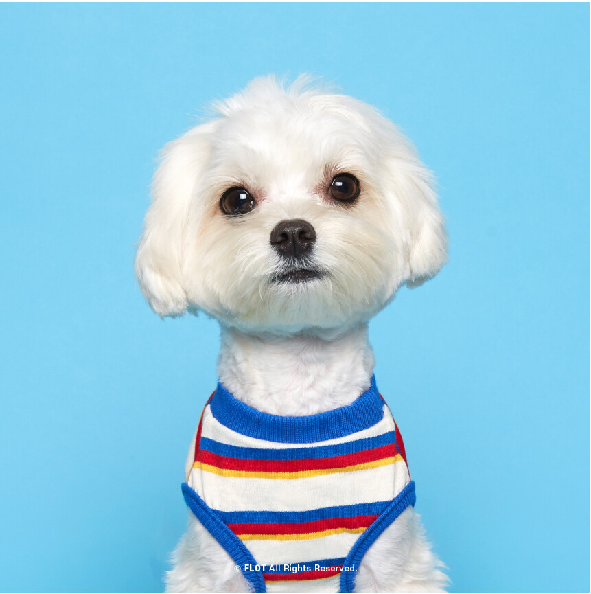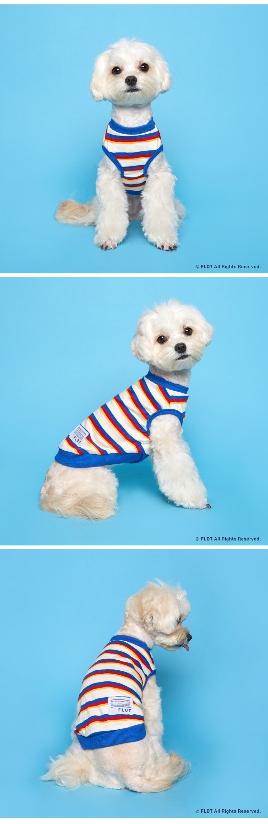 플로트 스트라이프 민소매티셔츠 강아지옷 화이트