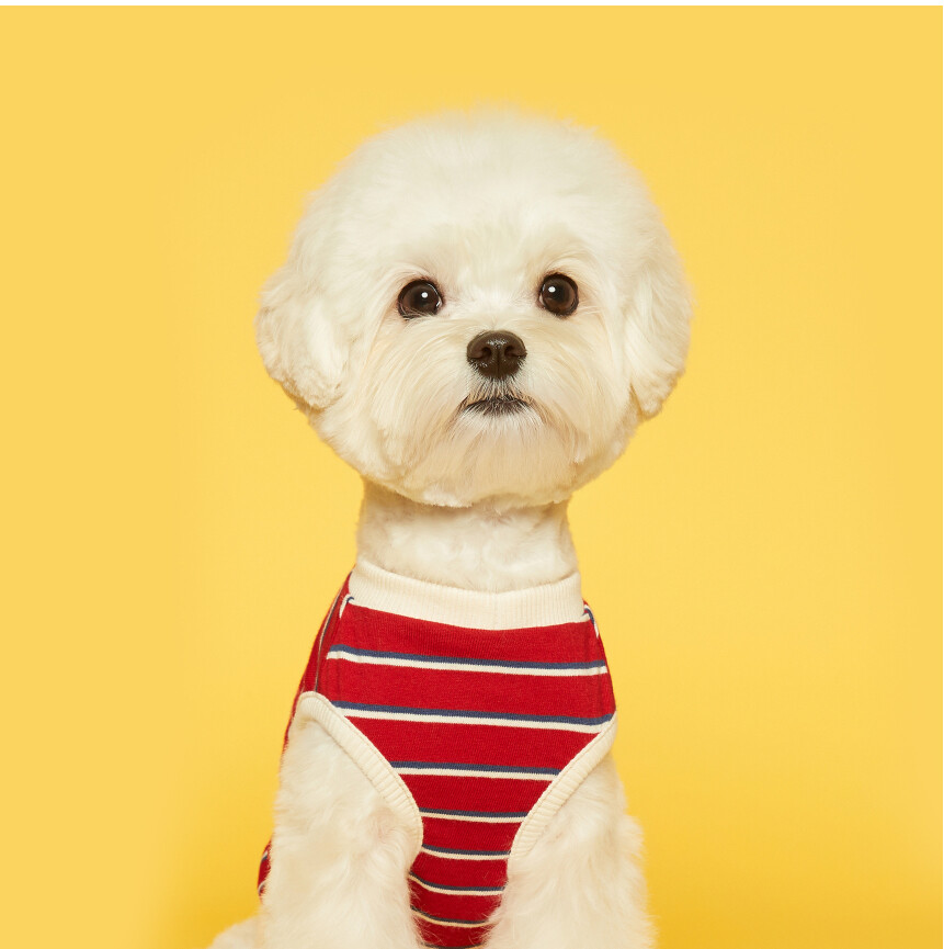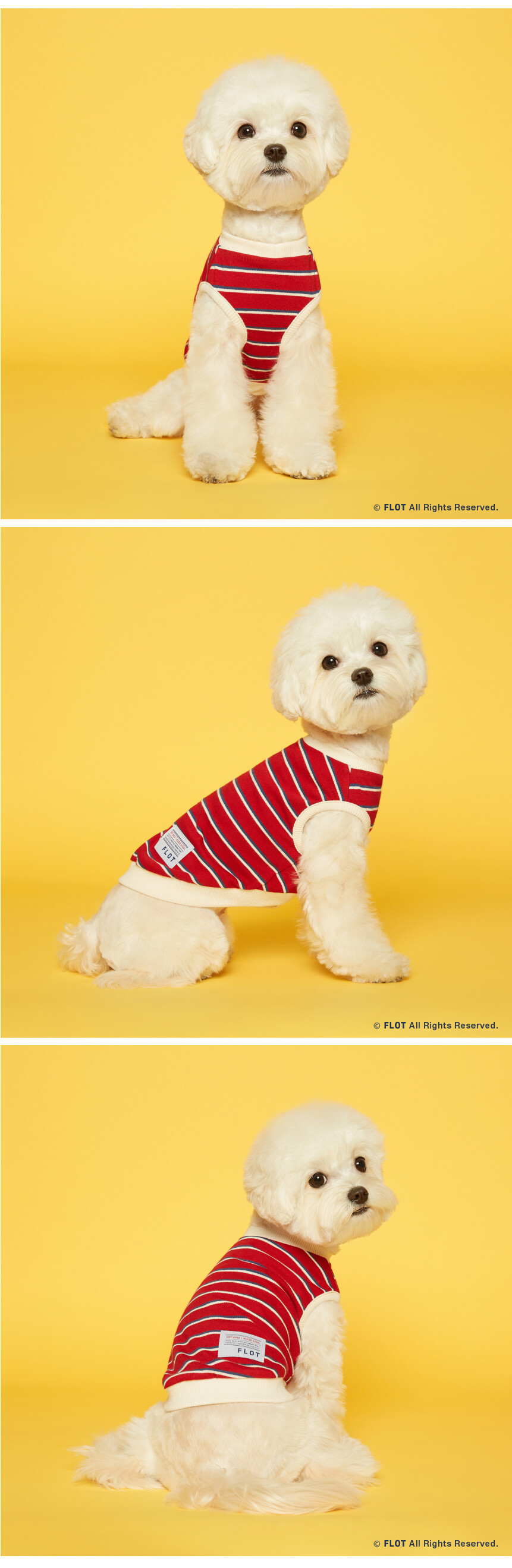 플로트 스탠다드 민소매티셔츠 레드아이보리 애견옷