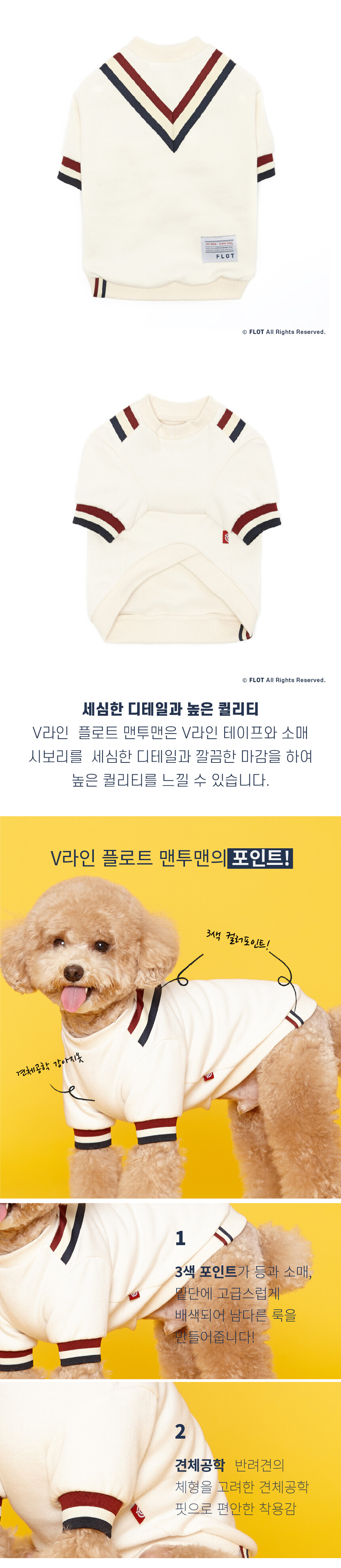 플로트 스탠다드 맨투맨 강아지옷 V라인아이보리