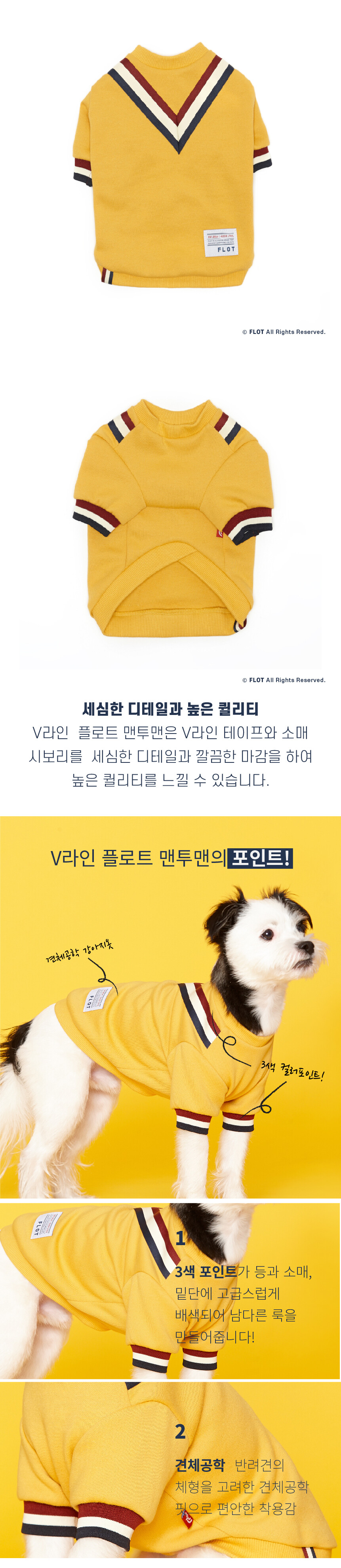 플로트 스탠다드 맨투맨 강아지옷 V라인옐로우