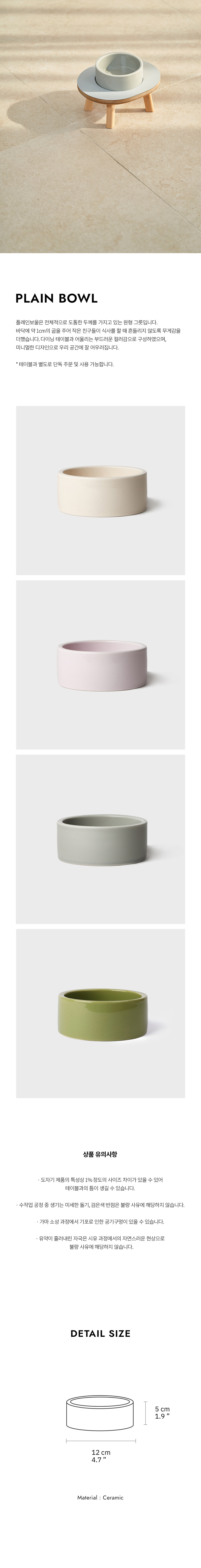 PLAIN BOWL은 DINING TABLE과 맞는 컬러를 입힌 묵직한 도자입니다. 바닥에 약 1CM의 굽을 주어 작은 친구들이 식사를 할 때 흔들리지 않도록 무게감을 더했습니다.*테이블과 별도로 단독 주문 및 사용 가능합니다.