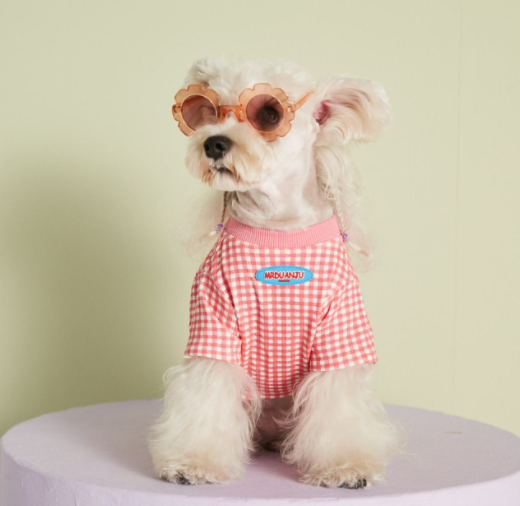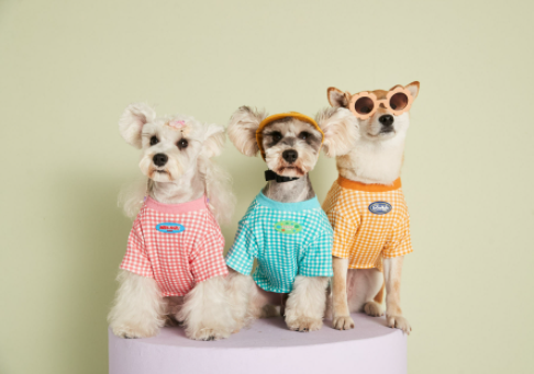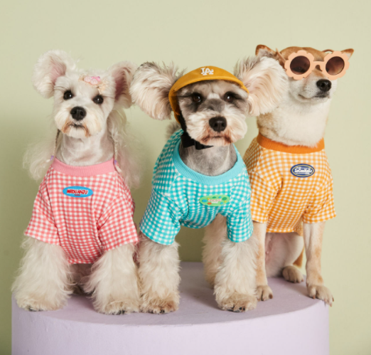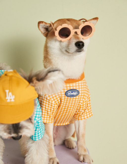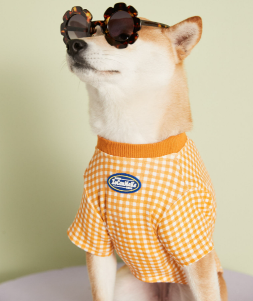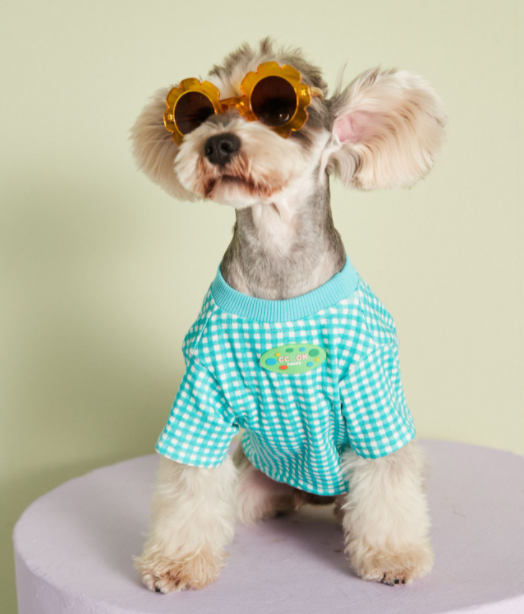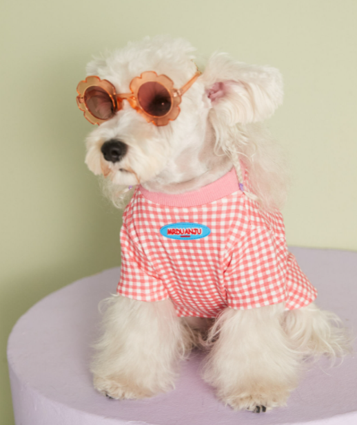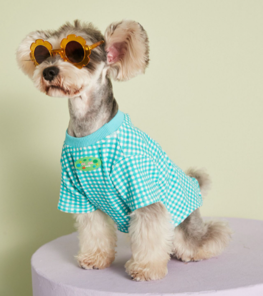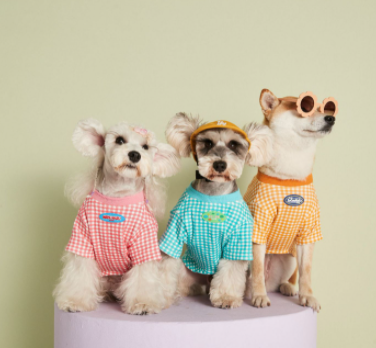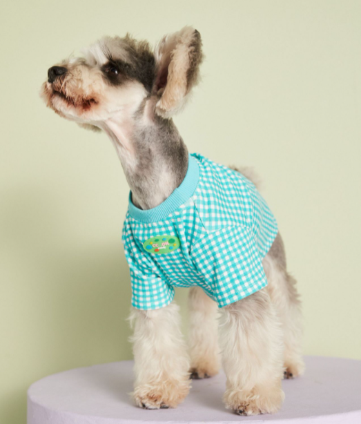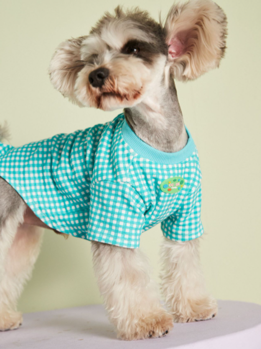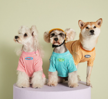 멍신사 파스텔 체크 반려동물 강아지고양이 티셔츠