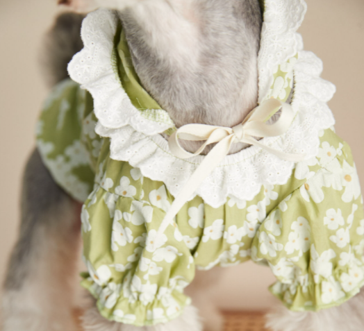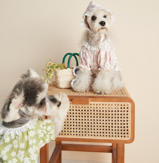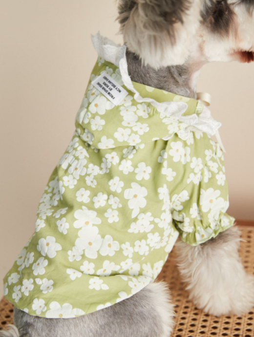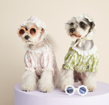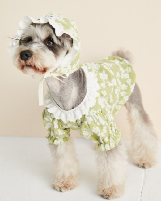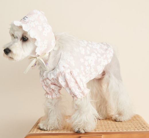 멍신사 레트로 플라워 반려동물 모자세트 강아지 고양이 산책외출 티셔츠
