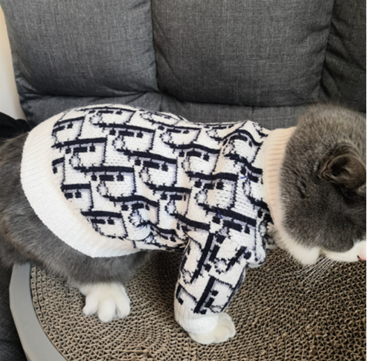 멍신사 화이트 레터링 패턴 니트 스웨터