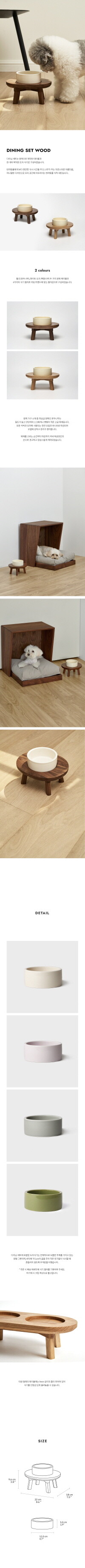 DINING SET는 화이트오크 원목으로 제작된 테이블, 두개의 묵직한 도자식기로 구성되어있습니다.반려동물에게 보다 편리한 식사시간을 주고,나무가 주는 자연스러운 아름다움과 미니멀한 디자인으로 우리 공간에 어우러지는 반려동물 식탁 세트입니다.