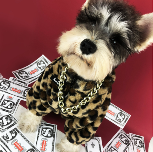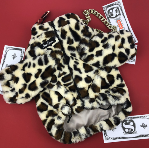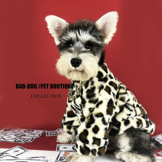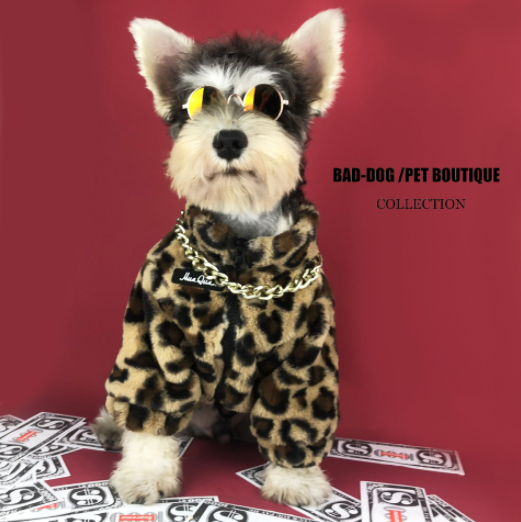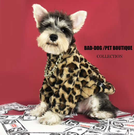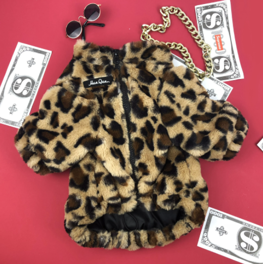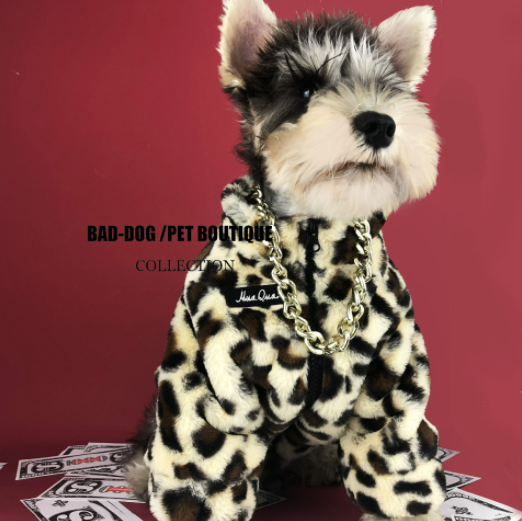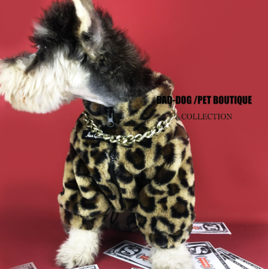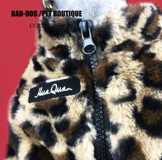 멍신사 호피무늬 퍼 반려동물 강아지 고양이 짚업 쟈켓 점퍼