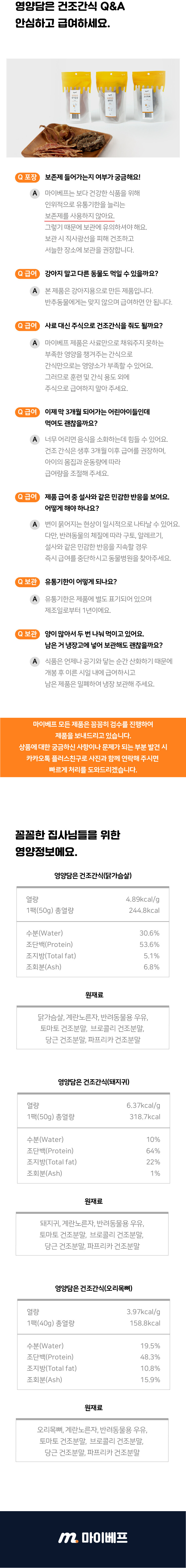 마이베프 영양담은 건조간식 닭가슴살 50g x 3개