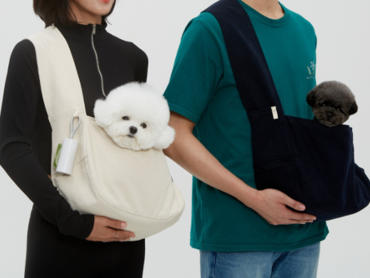 멍신사 베이직 화이트 반려동물 슬링백 심플 컬러 강아지 고양이 외출가방