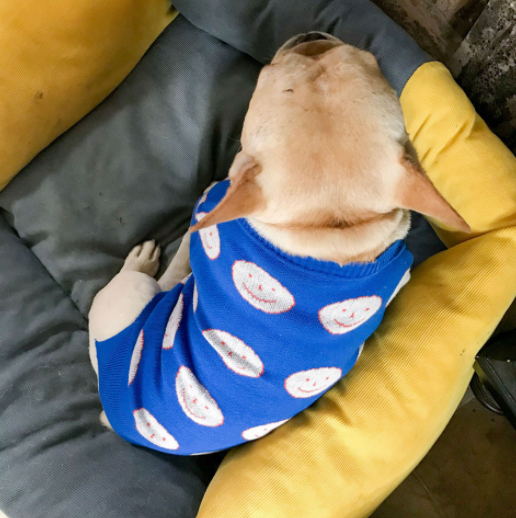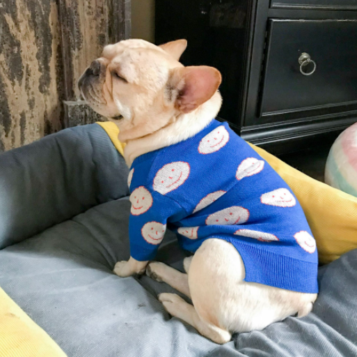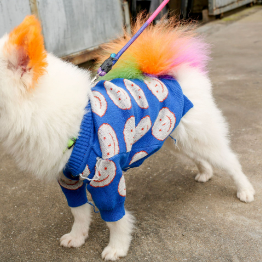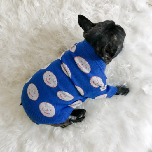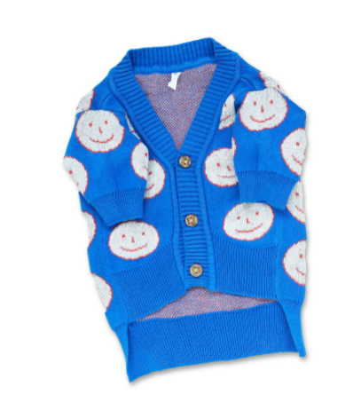 멍신사 화이트 페이스 패턴 블루 니트 가디건