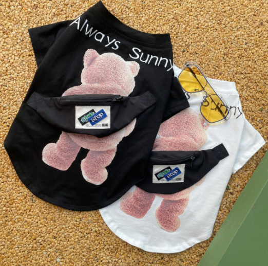 멍신사 반려동물 강아지 고양이 베어 힙색 반팔 티셔츠