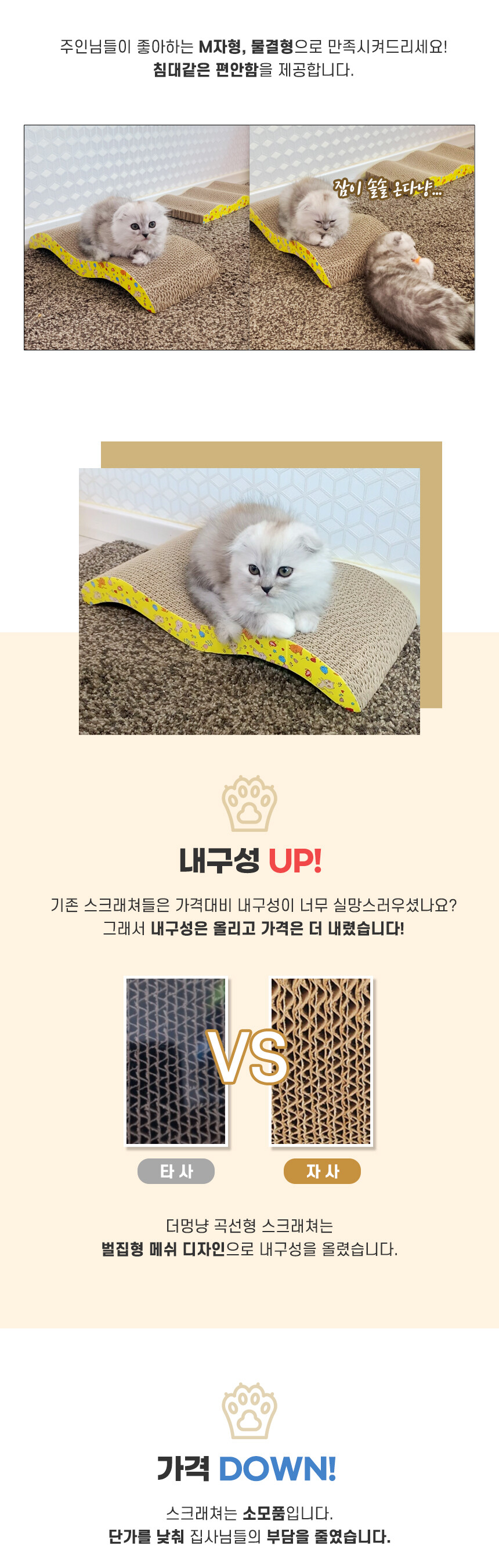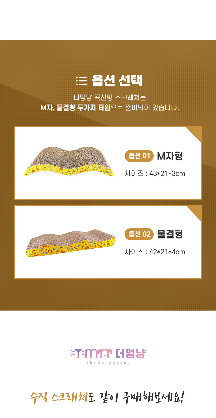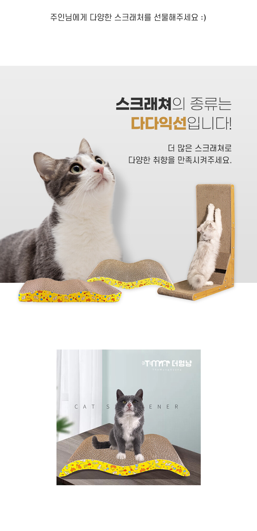 더멍냥 곡선형 고양이 스크래쳐 M자형 물결형