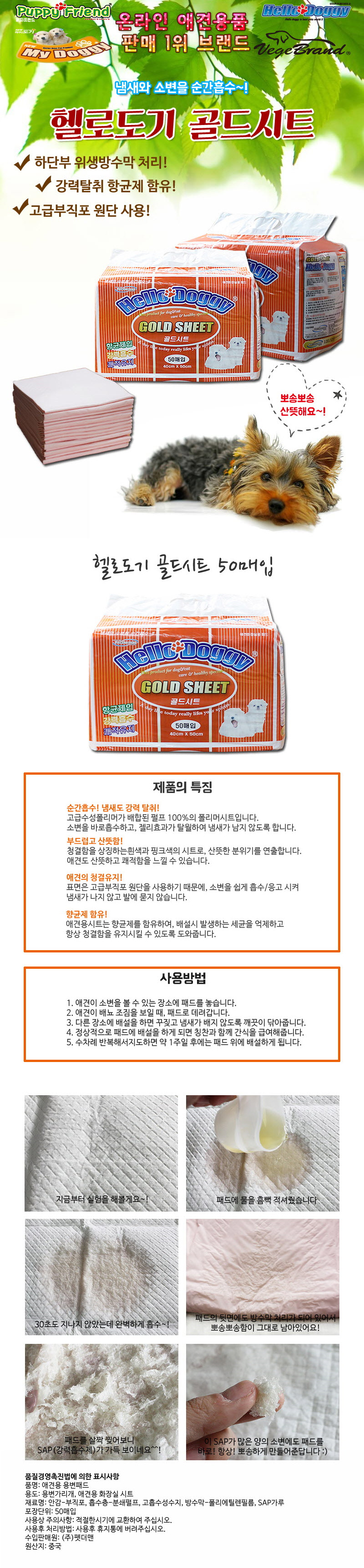 [pd]헬로도기 골드시트 패드 50매