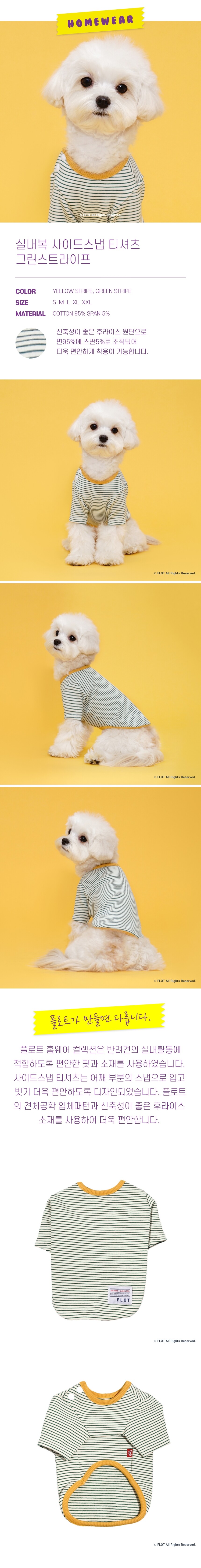 플로트 실내복사이드스냅티셔츠 강아지옷 그린스트라이프