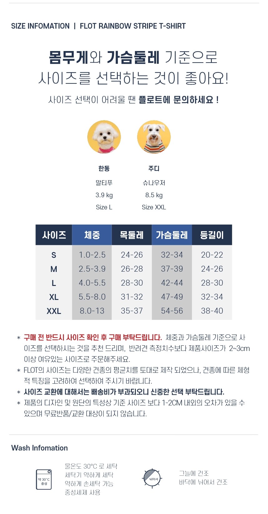 플로트 레인보우스트라이프티셔츠 강아지옷 화이트