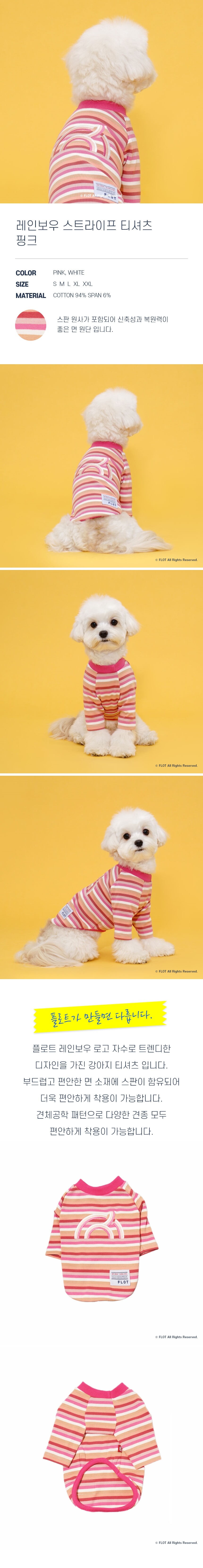 플로트 레인보우스트라이프티셔츠 강아지옷 핑크