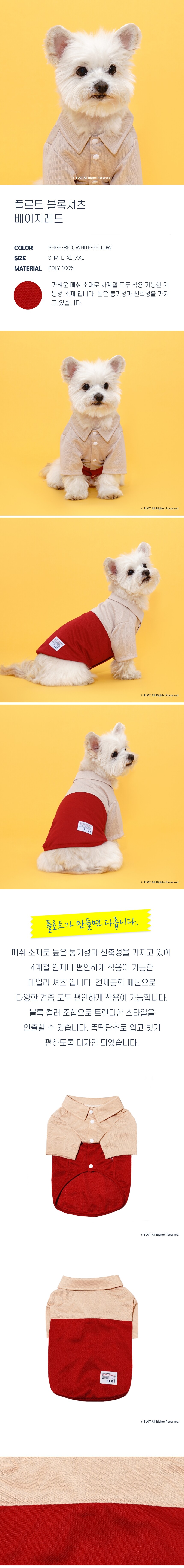 플로트 블록셔츠 강아지옷 베이지레드