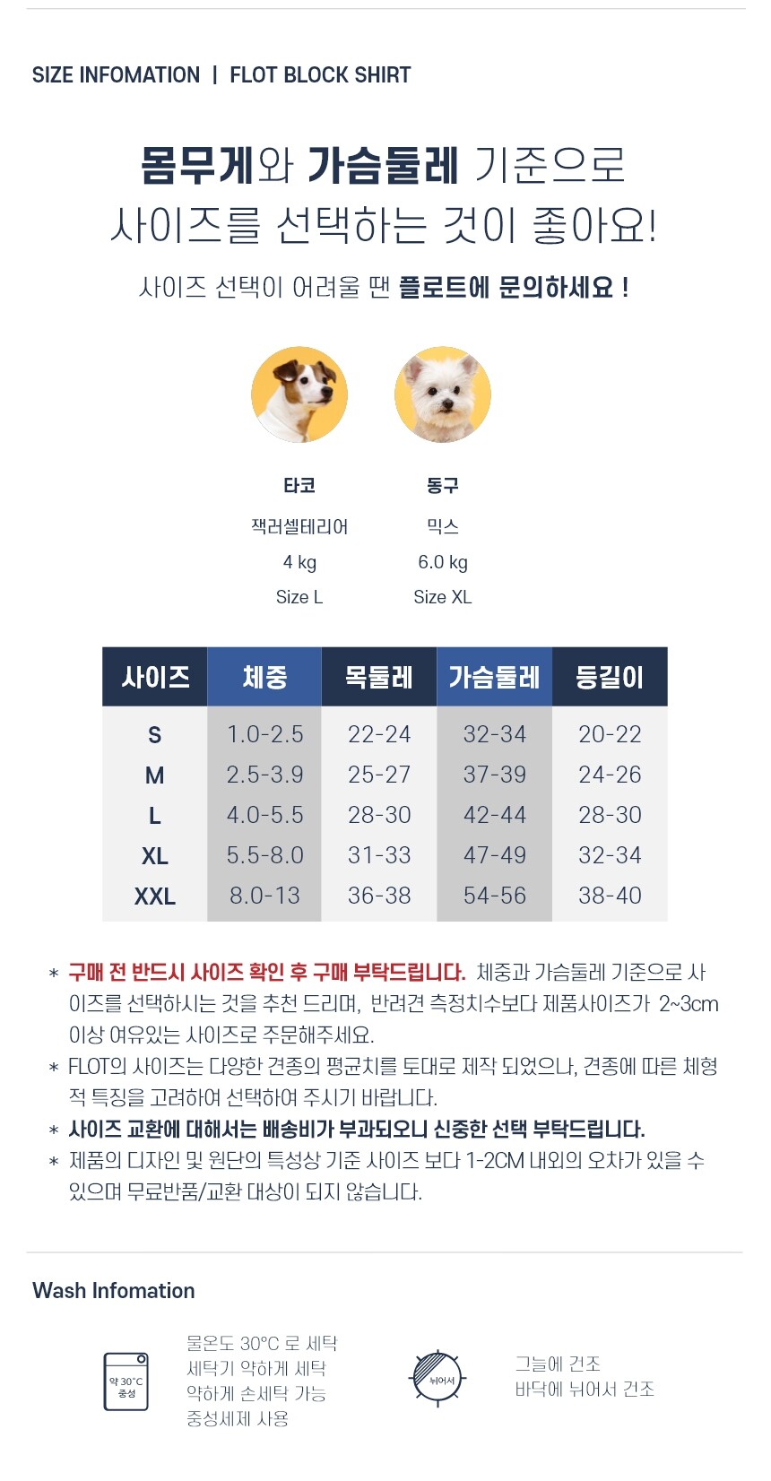 플로트 블록셔츠 강아지옷 화이트옐로우의 사본